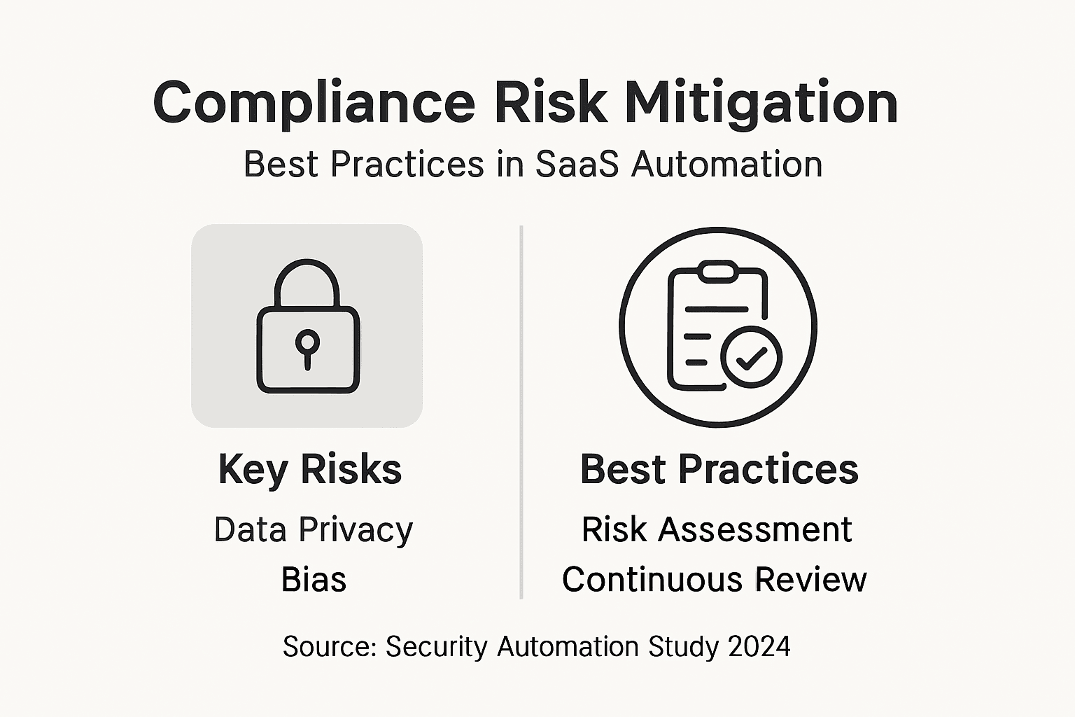 Compliance risks in SaaS automation include data privacy vulnerabilities, algorithmic bias, inadequate security controls, and poor documentation of automated decision-making processes. These risks can lead to legal penalties and reputational damage.