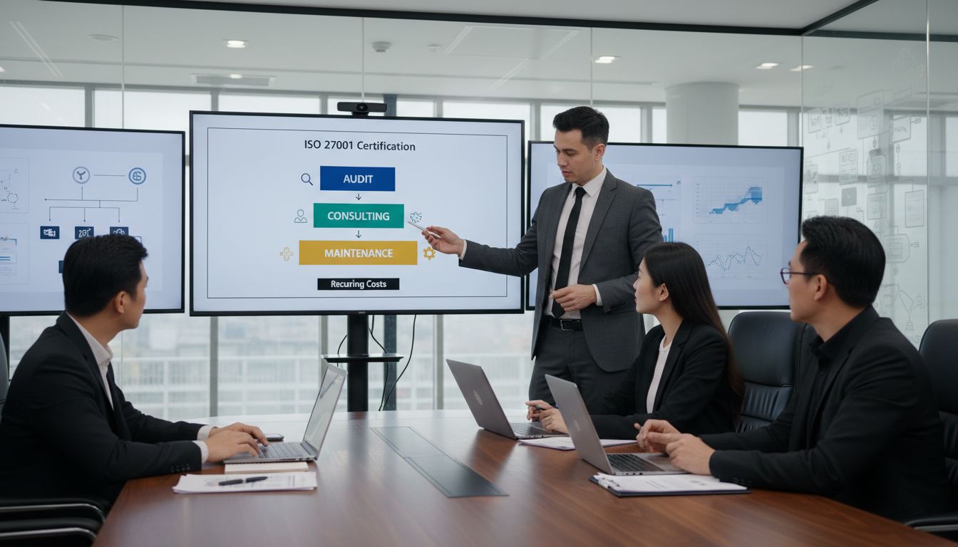 The total cost of ISO 27001 certification encompasses multiple components: