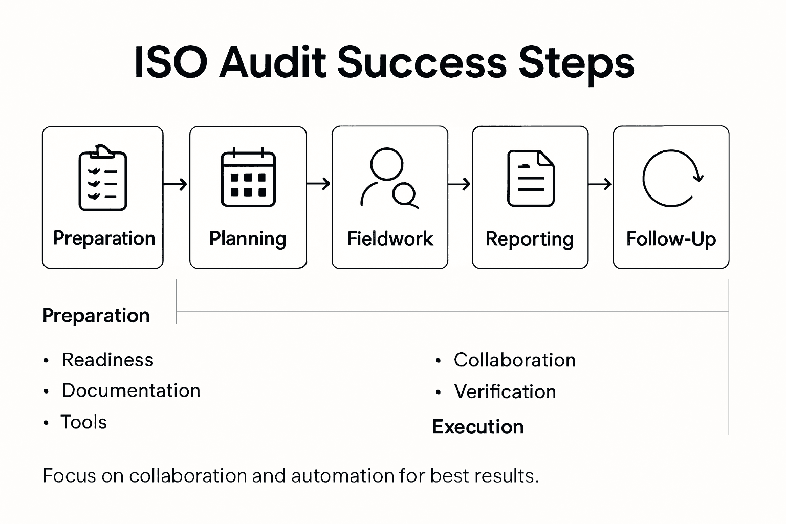 Automated tools streamline the ISO audit process by reducing preparation time and enhancing compliance management. Implement technology that collects audit evidence and generates reports automatically, which can cut your preparation time by up to 50% compared to manual processes.