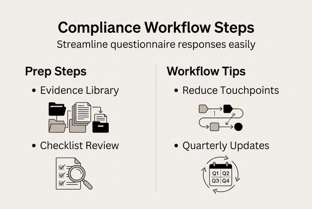 Before you even open a questionnaire, you need a preparation checklist. This means having your SOC 2 or ISO 27001 certificates current, your security policies documented and version-controlled, and a trust package assembled with your most frequently requested evidence. Understanding automating questionnaire basics early helps teams avoid scrambling for documents mid-response.