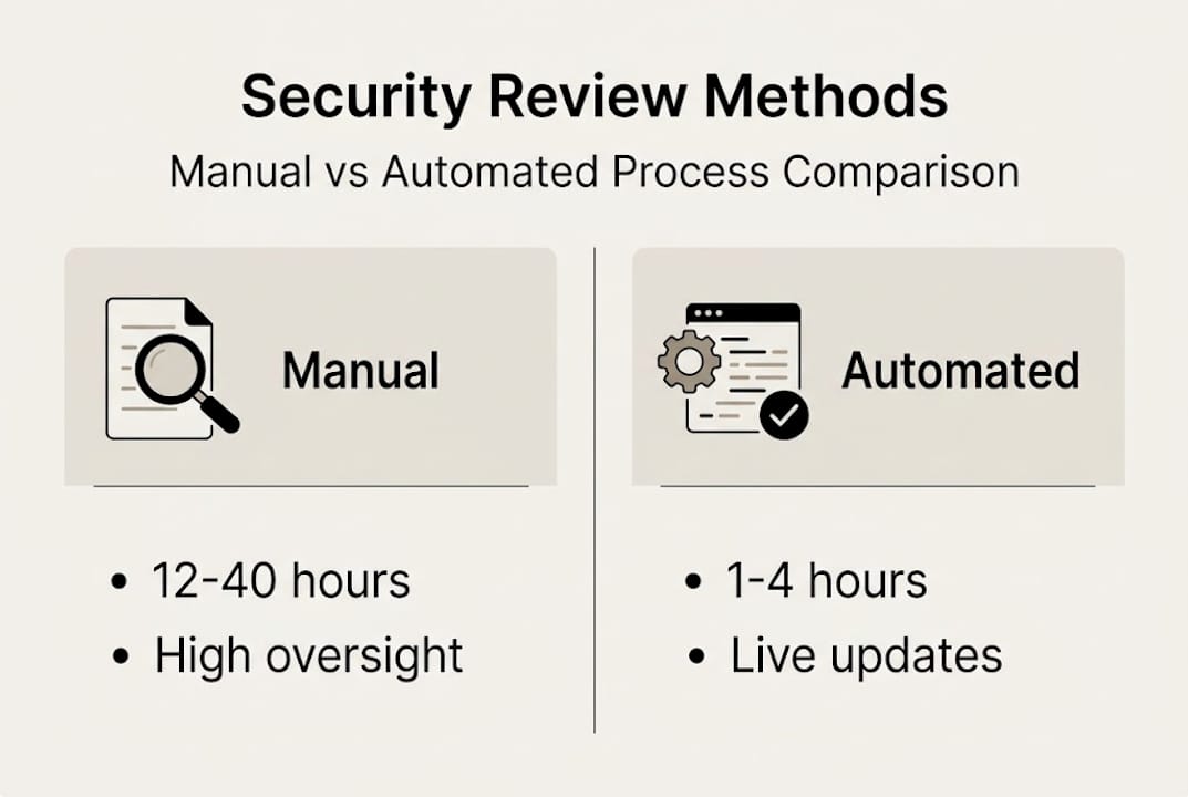 Manual security questionnaires take 12 to 40 hours to complete, while automation reduces this to 1 to 4 hours. That's not a marginal improvement. It's a structural shift in how your team spends its time.
