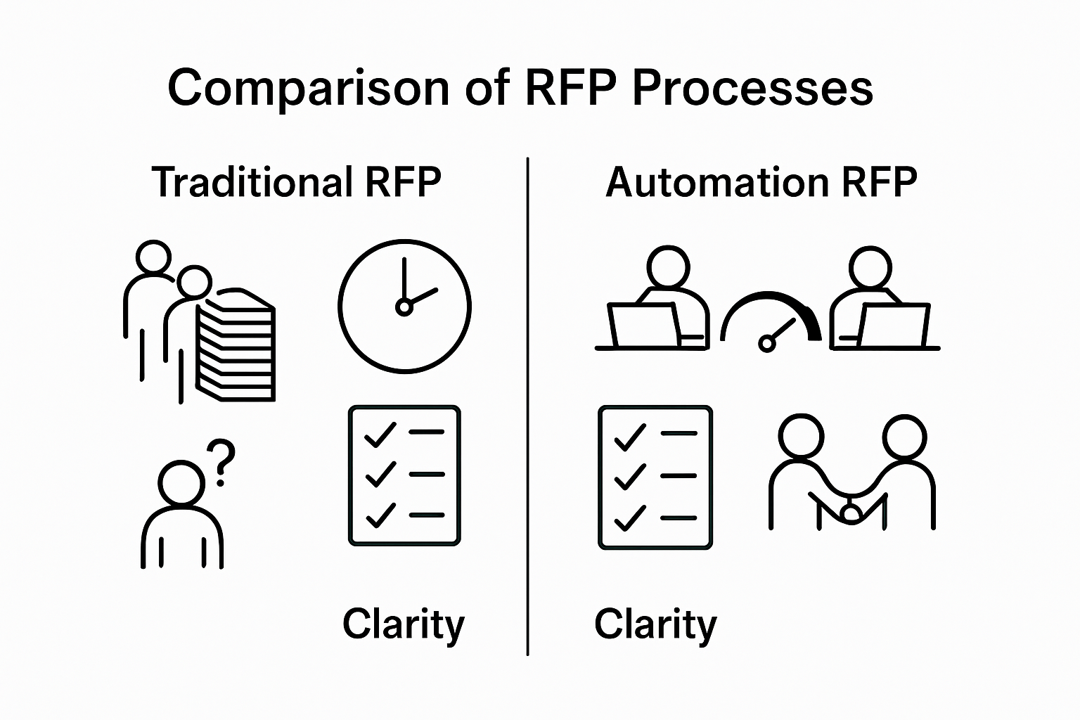 | Automation RFPs streamline procurement | Automation RFPs focus specifically on technology solutions that optimize workflow efficiency and operational transformation. |